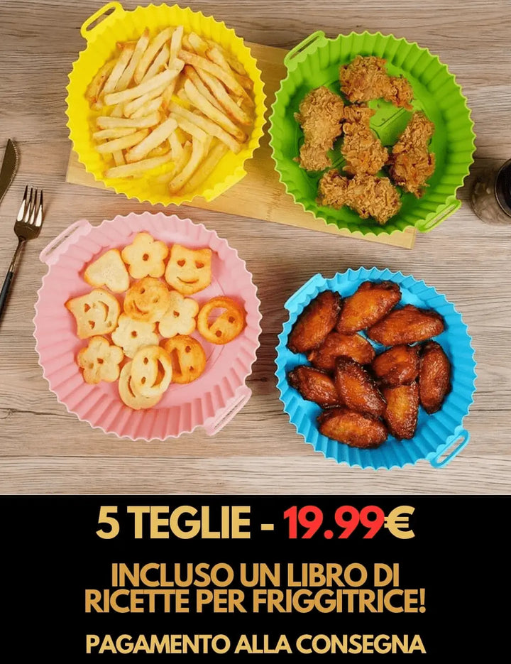Teglie per Friggitrice ad Aria UNIVERSALI - Basta sporco! - INCLUSO LIBRO DI RICETTE PER FRIGGITRICE!